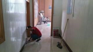 烈日下,汗珠滚滚,响应市创建卫生城市号召,员工们奋战在一线。