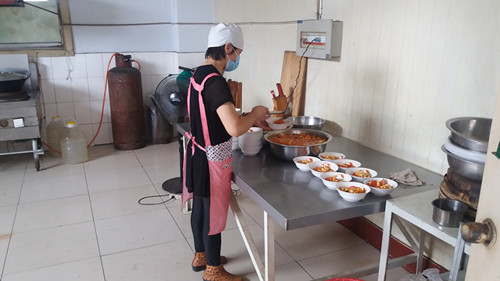 酷热的天气下,做好食堂后勤保障。