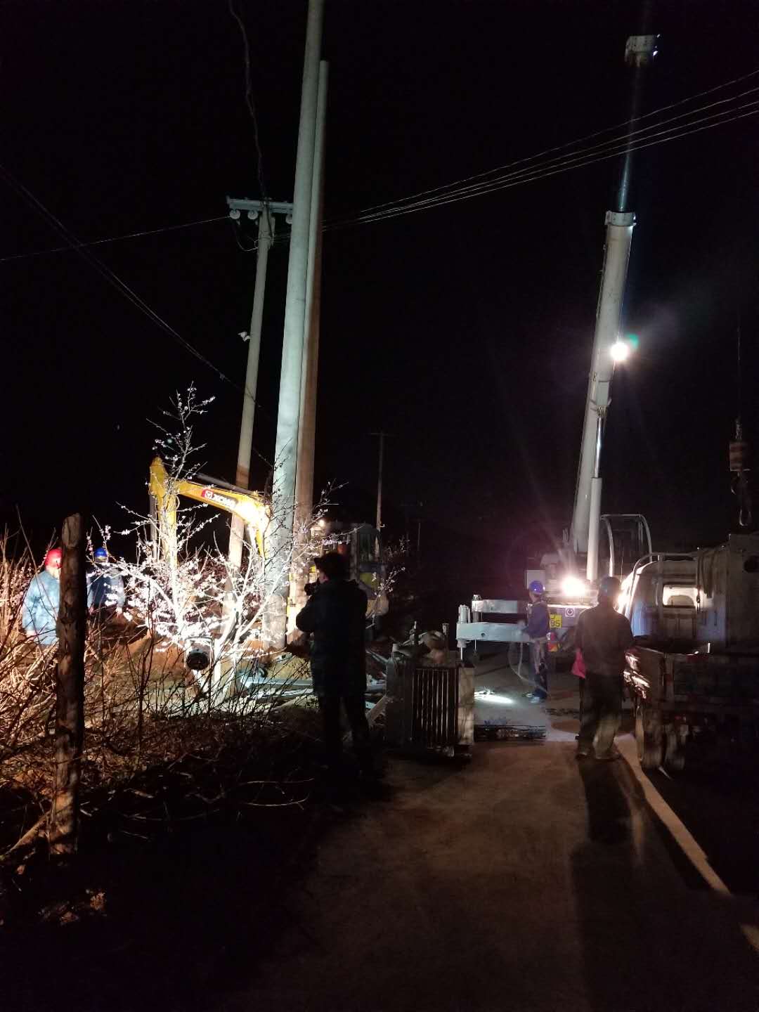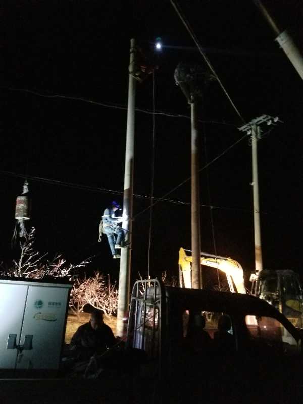 昨晚9点公司接到上级对肥城市第十八届桃花节开幕式用电急剧增大,需紧急架线供电的通知下达到施工部,我公司立刻组织人员、机械、材料,于10前全部到达现场,立刻投入施工中。挖坑、埋杆、架线,安装台架、变压器、配电柜、高压线路带电接火,低压送电,争分夺秒,克服寒冷、疲劳、饥饿,一直奋战到凌晨5点,并一次性顺利通电成功,获得市领导人一致赞扬。