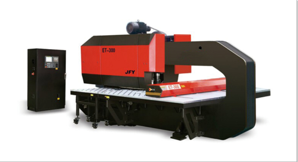 转塔冲床VT-300公称力30吨,最大加工板材尺寸 1250*5000 毫米,液压主传动,配置德国哈雷液压系统,采用数字伺服阀,,自动液压过载保护,受温度变化影响小,可针对不同板厚自动选择冲压行程,提高加工效率。极为方便的进行特殊工艺的加工,如百页窗、敲落孔等。转盘采用镶套式结构,延长了转盘的使用寿命;可配长导向模具,适用于较厚的板材,国际化配套的气动元件、液压元件及电气元件,保证了整机性能的可靠